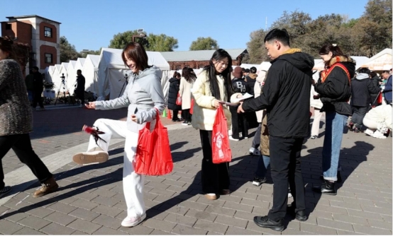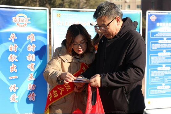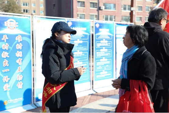 活动现场工作人员宣传职工互助保障政策,并开展游戏互动活动,将工会业务政策宣传与趣味游戏有机结合。