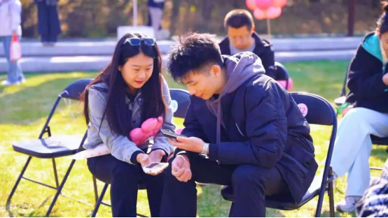 现场趣味游戏轮番上演,成为嘉宾们破冰交流的“催化剂”。“爱的垫脚石”考验团队协作与默契,参与者“人不离垫、垫随人移”,在携手完成挑战中增进了解;“叶遇秋缘·书签传情”环节,大家纷纷捡拾秋日落叶,亲手制作专属书签,在创意碰撞中自然攀谈,让好感悄然滋生;“月球漫步”则注重沟通与应变,在密切配合中打破隔阂,拉近心灵距离,为后续交流奠定坚实基础。